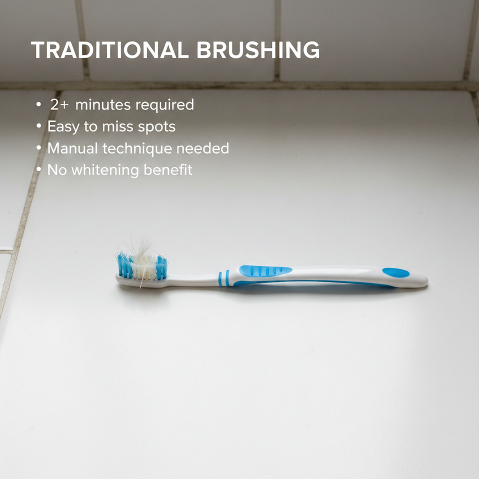 Traditional brushing is outdated. It takes too long, requires perfect technique, and still leaves you wondering if you missed a spot.